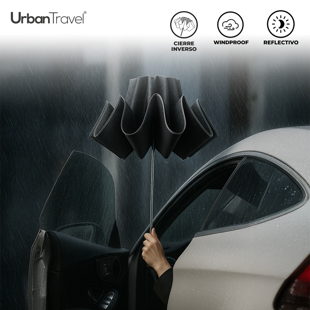 Paraguas plegable en poliéster RPET pongee 190T con herraje en aluminio y bordes reflectivos. Apertura y cierre automático, 8 cascos. Mango tipo carabinero en caucho para poderlo colgar. Incluye funda reciclada RPET. Medidas: Casco: 38 cm x Largo Total: 70 cm x Cobertura: 103 cm. Marca: Máximo 20 cm / Screen.NOTA: Abre y cierra de forma reversible para permitir que la parte humeda quede dentro del paraguas y asi evitar gotas de agua. Ficha Técnica