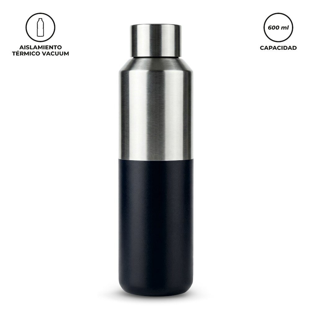 Botilito doble pared vacuum en acero inoxidable, con aislamiento térmico que mantiene la bebida fría o caliente hasta 6h aprox (puede variar dependiendo de las condiciones climáticas), con tapa rosca. Empaque caja individual.Medidas: 24.5 cm x 7 cm de diámetro.Marca: 4 cm / Tampografía con tratamiento / Láser.Ficha Tecnica