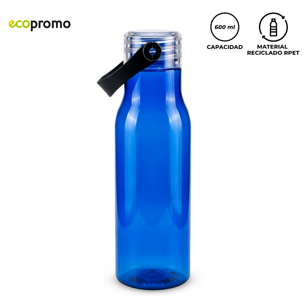 Botilito plástico reciclado RPET. Tapa plástica tipo rosca y agarre en silicona.Medidas: 23 cm x 6.5 cm de díametro.Marca: 5 cm / Tampografía / 19 cm / Serigrafía contorno.Ficha Tecnica