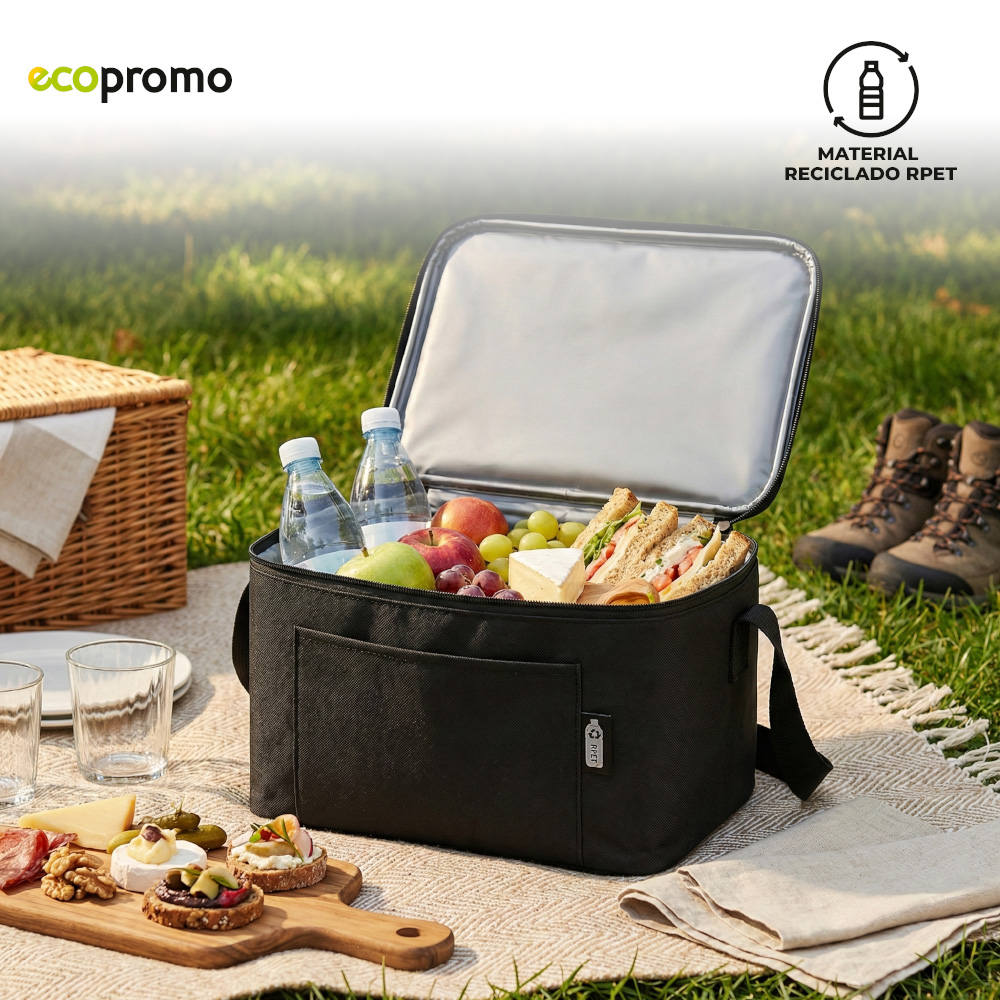 Nevera en poliéster RPET con interior en PVC.Medidas: 17cm x 27 cm x 13,5 cm.Marca: 10 cm / Screen.
