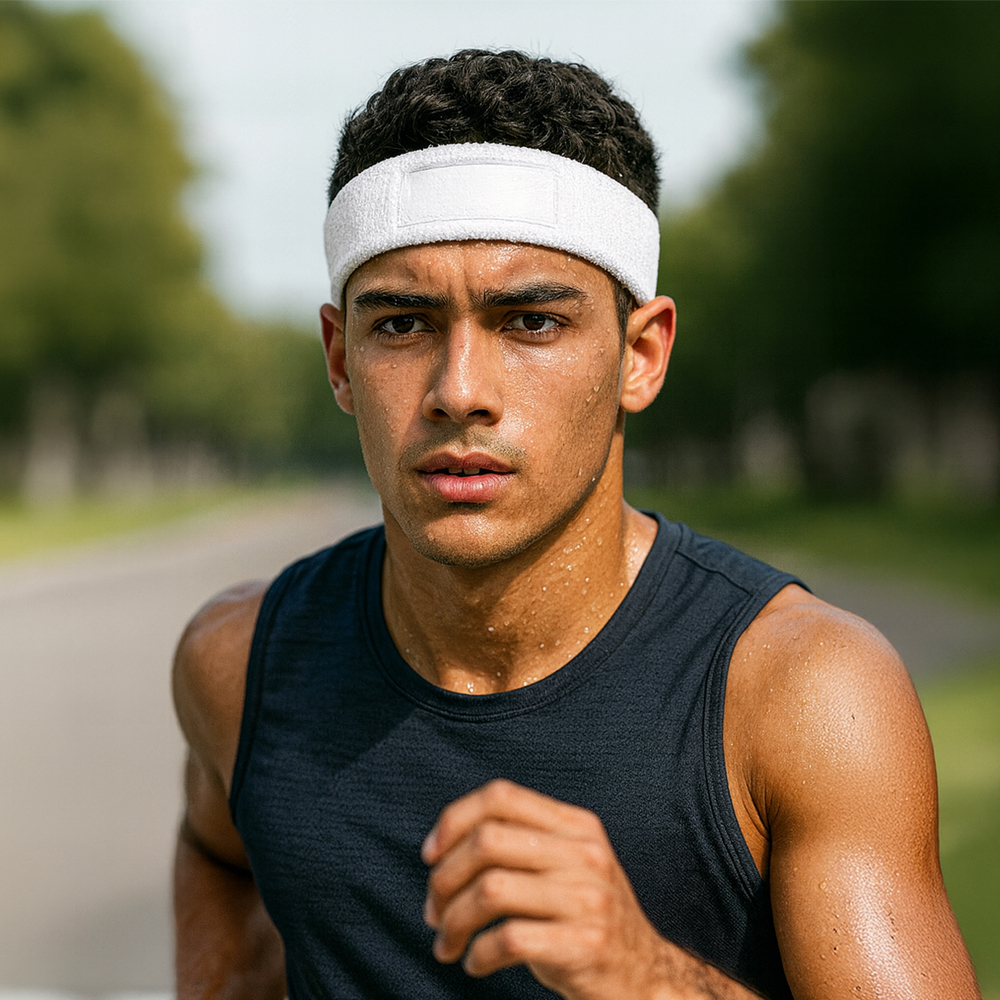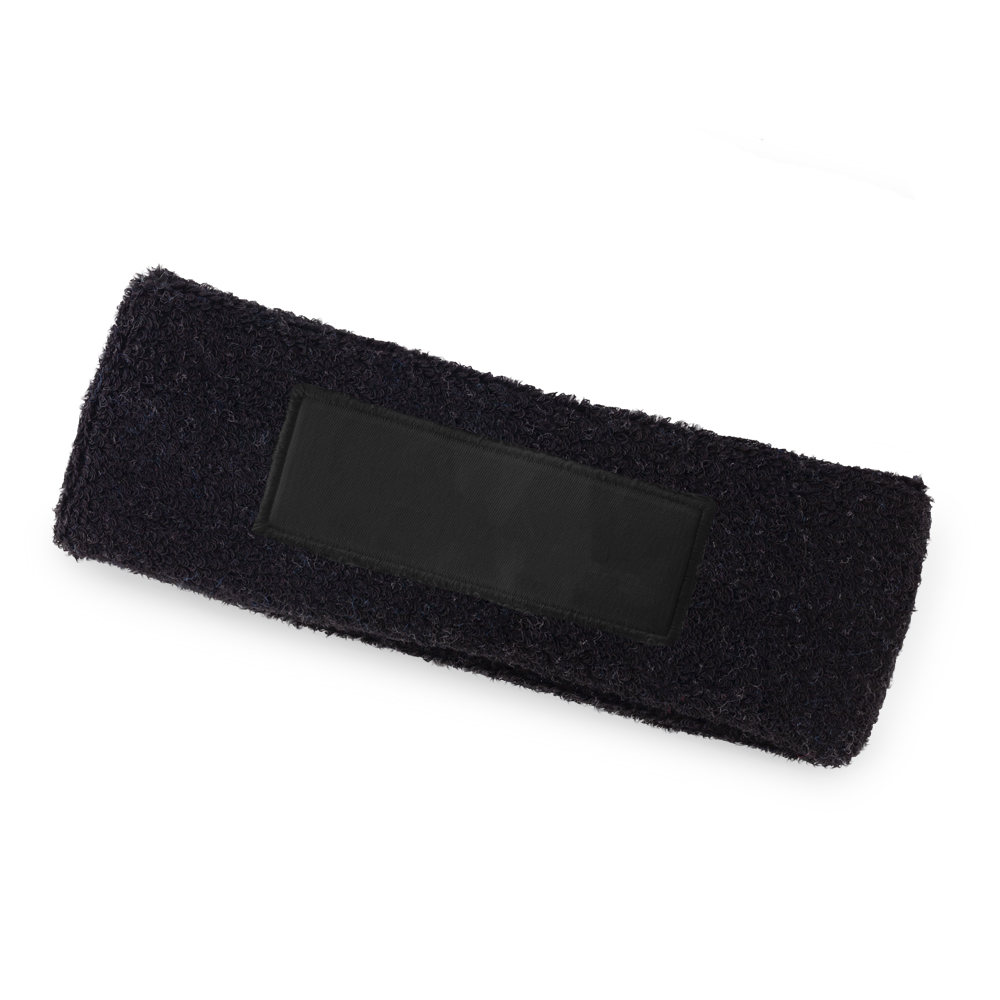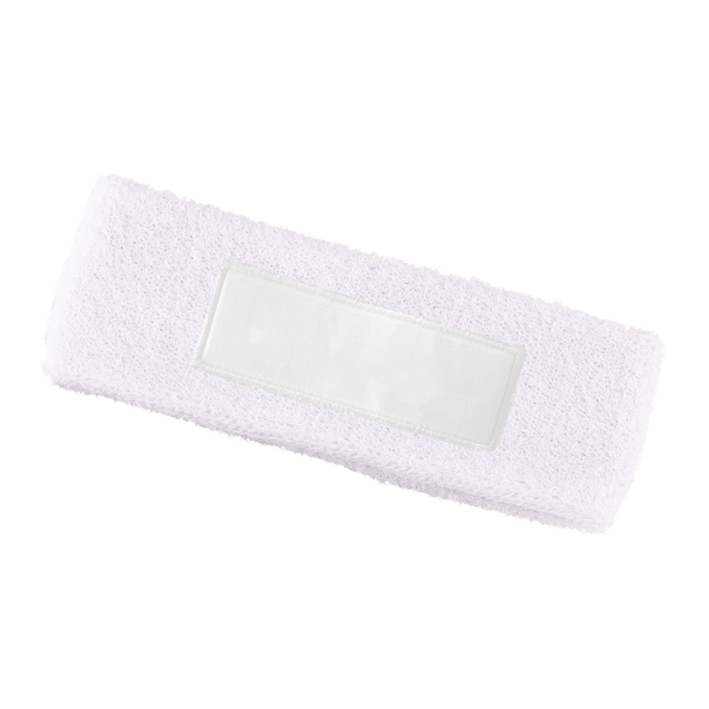 Balaca deportiva para el sudor en poliéster. Con parche para logo.Medidas: 18 cm x 6 cm.Marca: 5 cm / Screen a una tinta / DTF(Parche para logo).