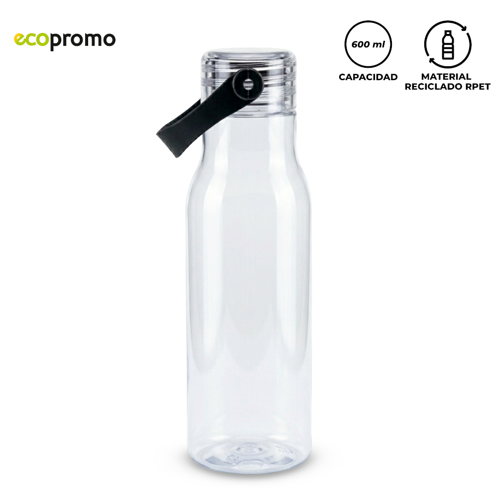 Botilito plástico reciclado RPET. Tapa plástica tipo rosca y agarre en silicona.Medidas: 23 cm x 6.5 cm de díametro.Marca: 5 cm / Tampografía / 19 cm / Serigrafía contorno.Ficha Tecnica