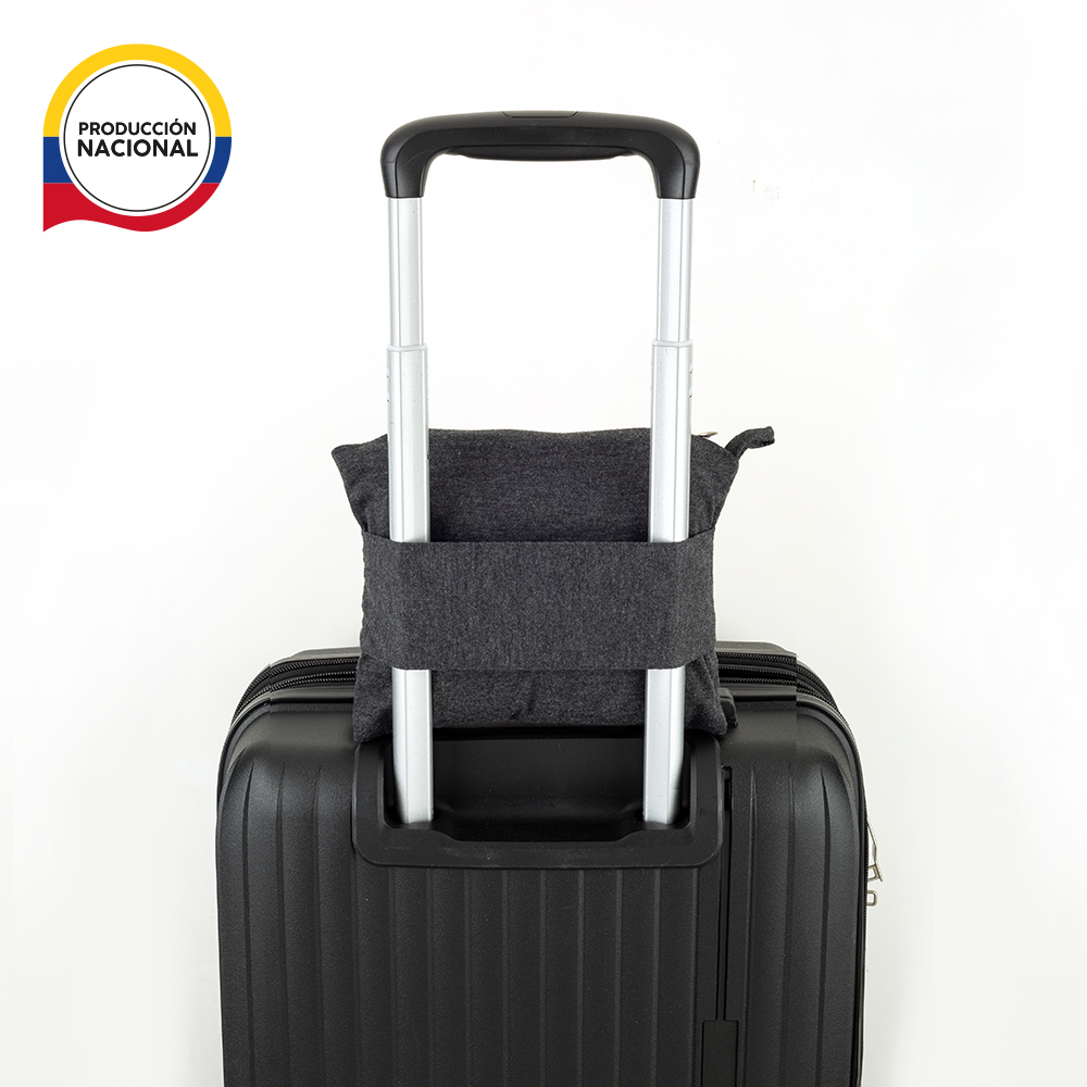 Cobija en poliéster licra. Puede ser usada de dos maneras: de cobija si se abre y de almohada cuando se compacta y se cierra. Bolsa en poliéster con correa para sujetarla a trolley.Medidas: Cobija abierta: 120 cm x 115 cmBolsa: 22 cm x 18 cm.Marca: Se define por puntadas / Bordado.