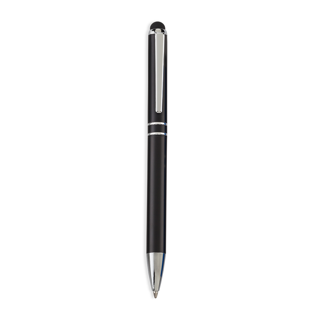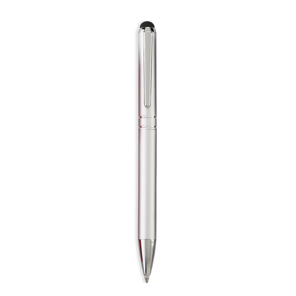 Bolígrafo metálico con stylus. Mecanismo twist.Medidas: 14 cmMarca: 3,3 cm / LáserVenta mínima y en múltiplos de caja de 50 unidades. Ficha Técnica