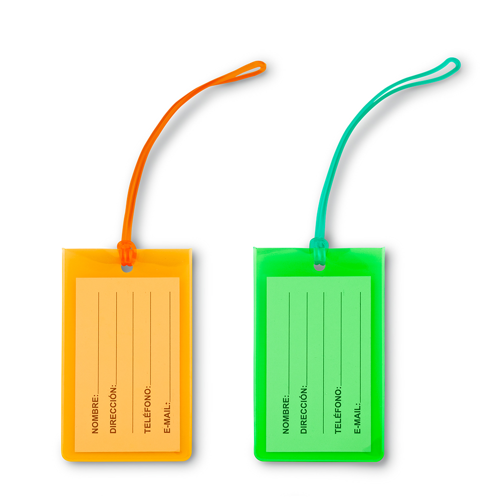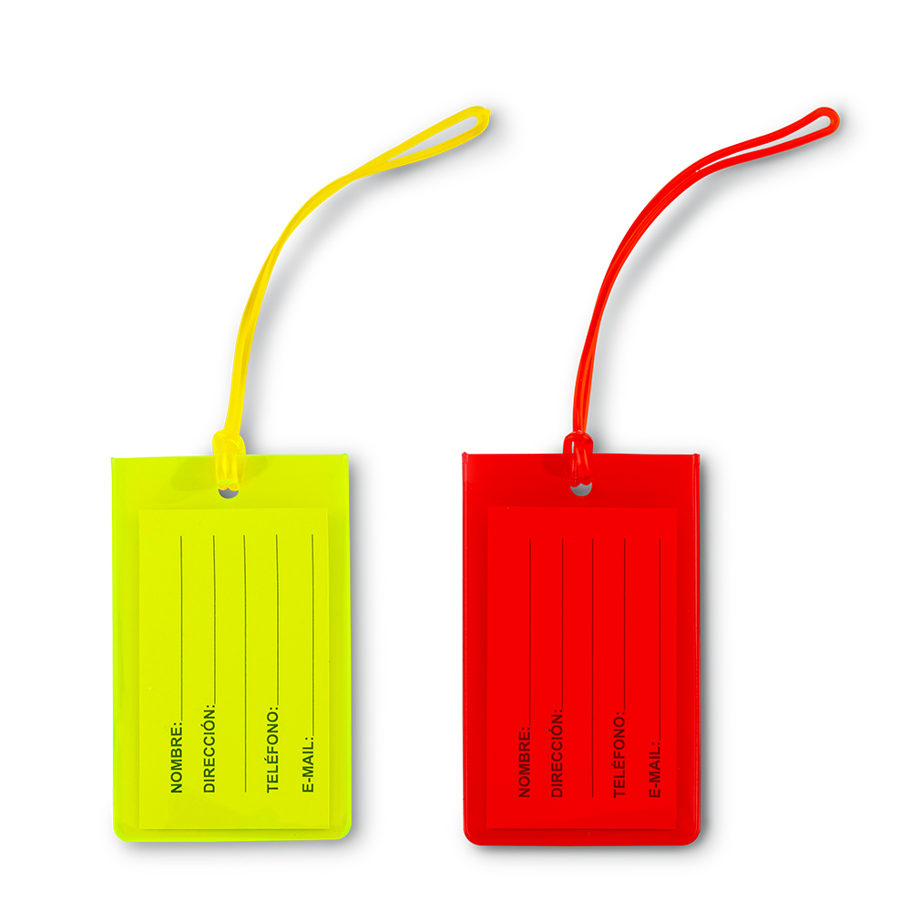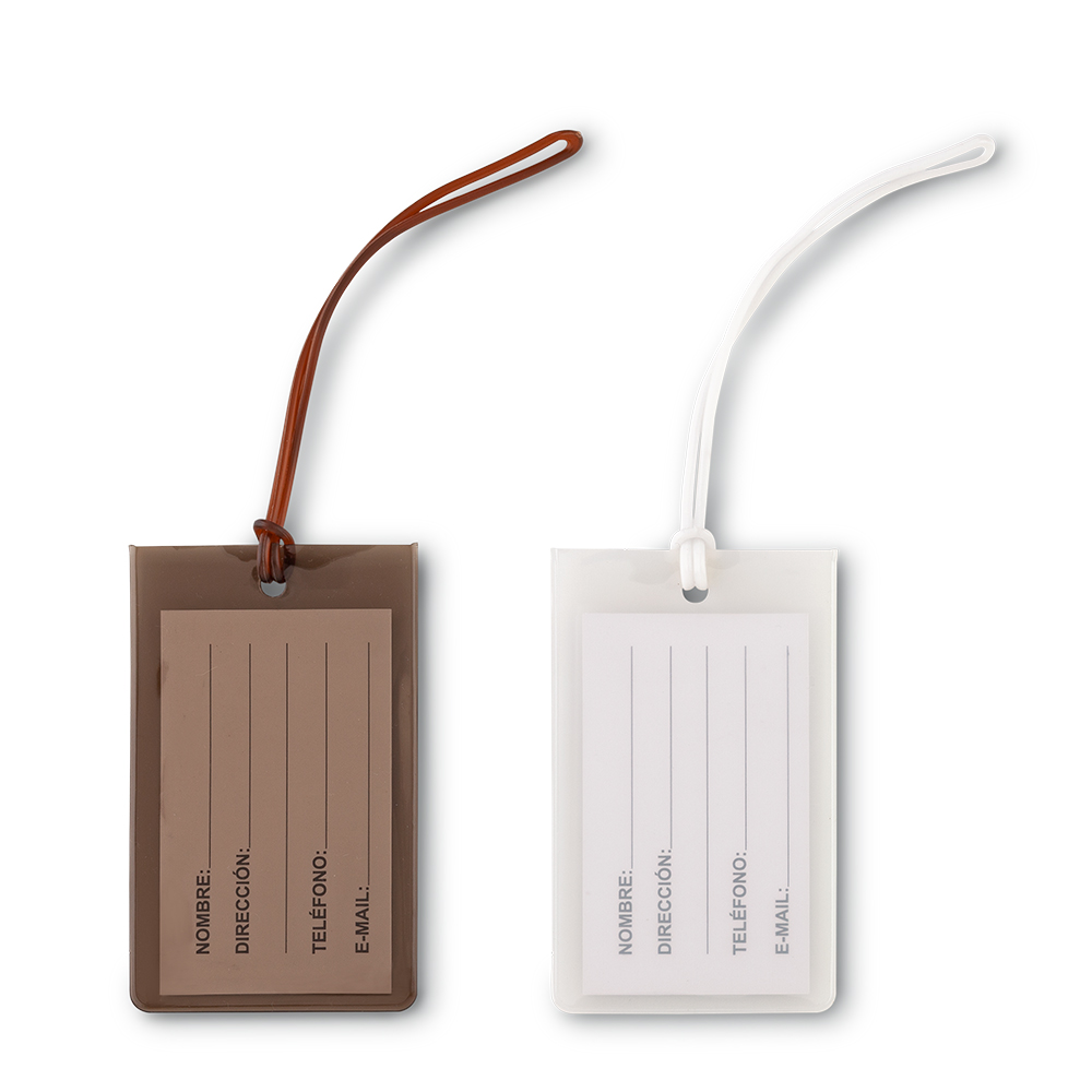 Identificador de maletas en PVC.Medidas: 11 cm x 6.5 cm.Marca: 5 cm / Tampografia