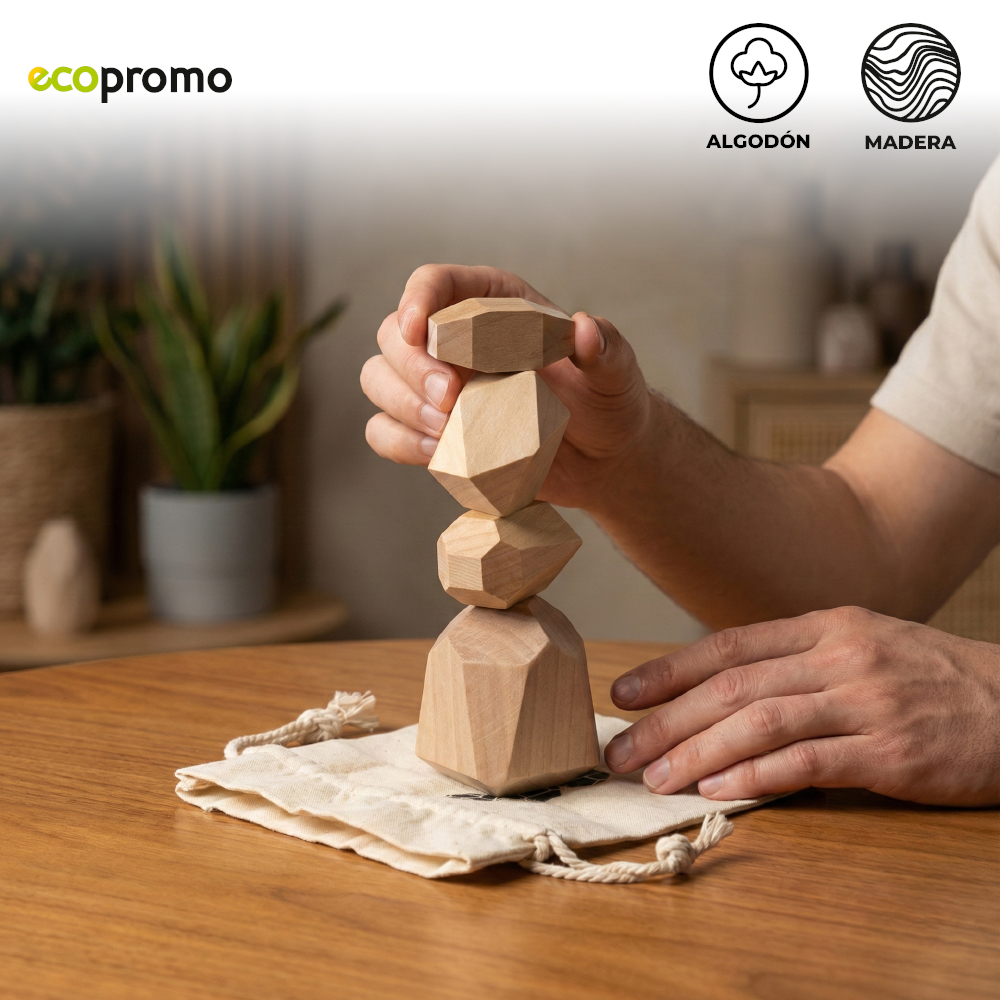 Juego de 4 piezas en madera natural, diseñado para desarrollar habilidades. Con bolsa en algodón.Medidas Bolsa: 11 cm x 9.5 cm.Marca: 5 cm / Screen.