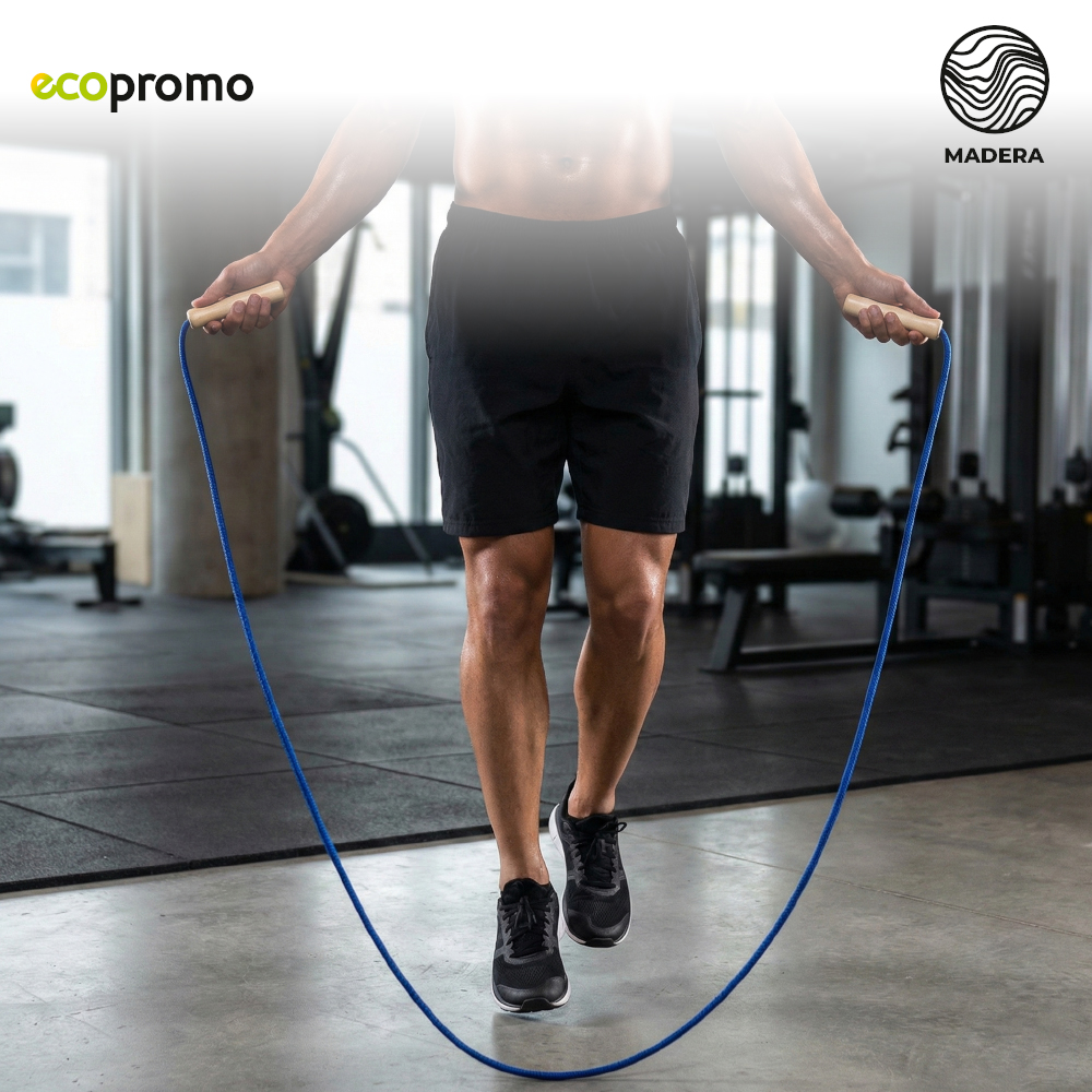 Cuerda de saltar de 240 cm con mangos en madera. Medidas: 260 cm.Marca: 4 cm / Láser / Tampografía.Ficha Tecnica