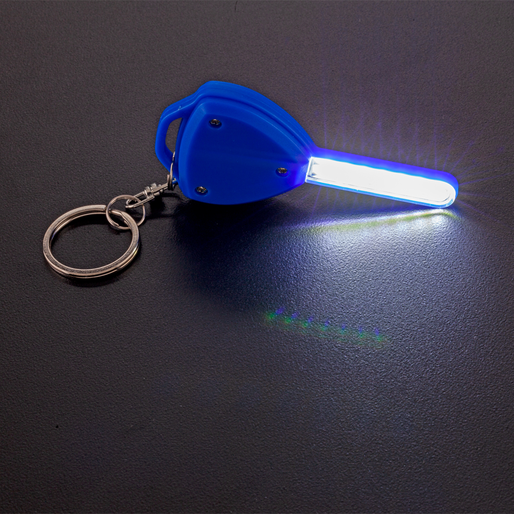 Llavero plástico con 7 LEDS. Con tres modos diferentes de luz (2 fijas con diferente intensidad y una intermitente).Medidas: 8 cm x 3.5 cm x 1.1 cm.Marca: 1.5 cm / Tampografía.