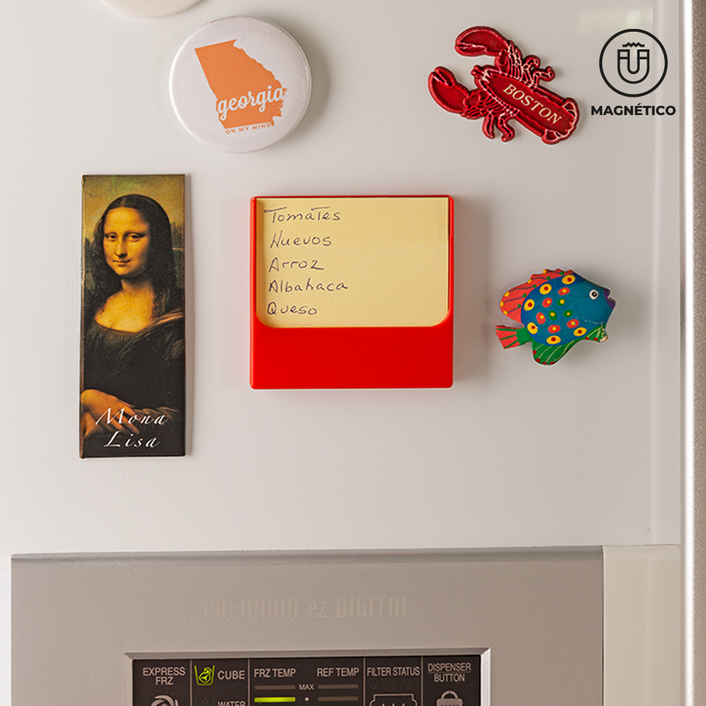 Memo pad plástico con destapador e imán.Incluye 25 hojas.Medidas: 8 cm x 7.5 cm x 1 cm.Marca: 3 cm / Tampografía