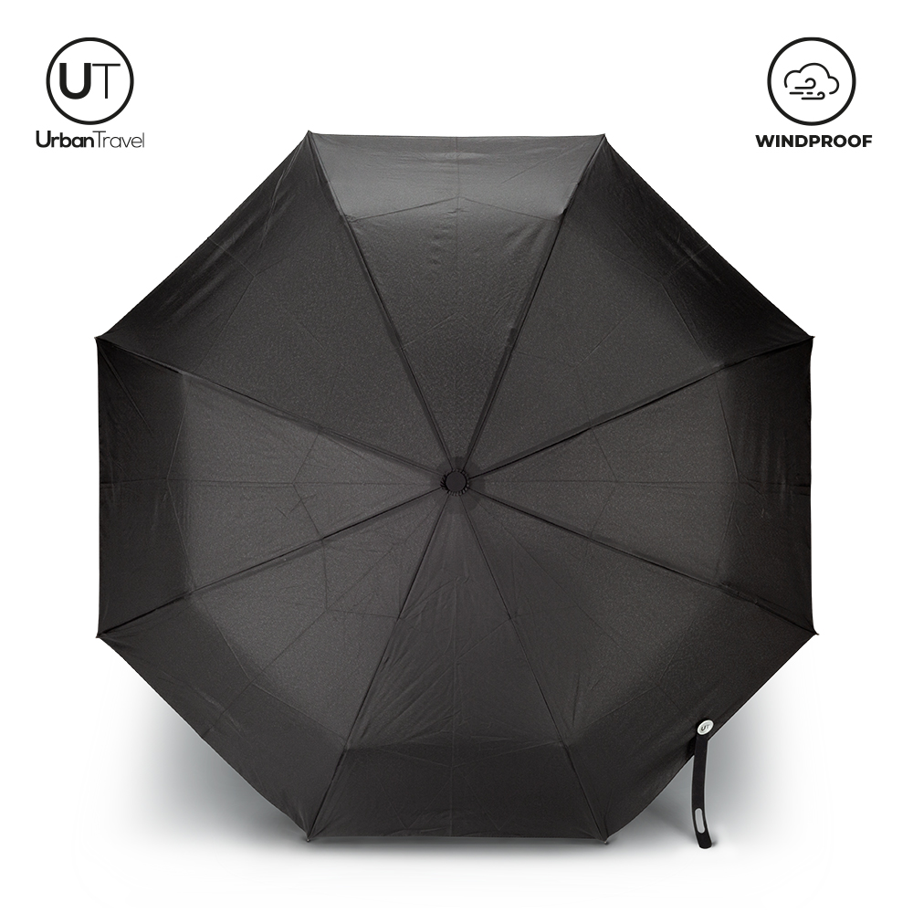 Poliéster pongee 190T. Plegable. Apertura y cierre automático. Herraje metálico. Sistema antibrisa. Con forro para cargar. Mango plástico. 8 cascos.Medidas: 21” / Cobertura: 97 cm x /Ancho: 35.5 cm / Largo Total: 30 cm.Marca: 15 cm / Screen.