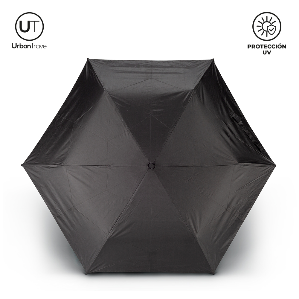 Poliéster pongee 190T. Plegable. Apertura y cierre manual. Herraje en aluminio con fibra de vidrio. Protección UV (UPF30). Con forro para cargar. 6 cascos. Ultraligero.Medidas: 21” / Cobertura: 91 cm x /Ancho: 45 cm / Largo Total: 22 cm.Marca: 15 cm / Screen.Ficha Técnica