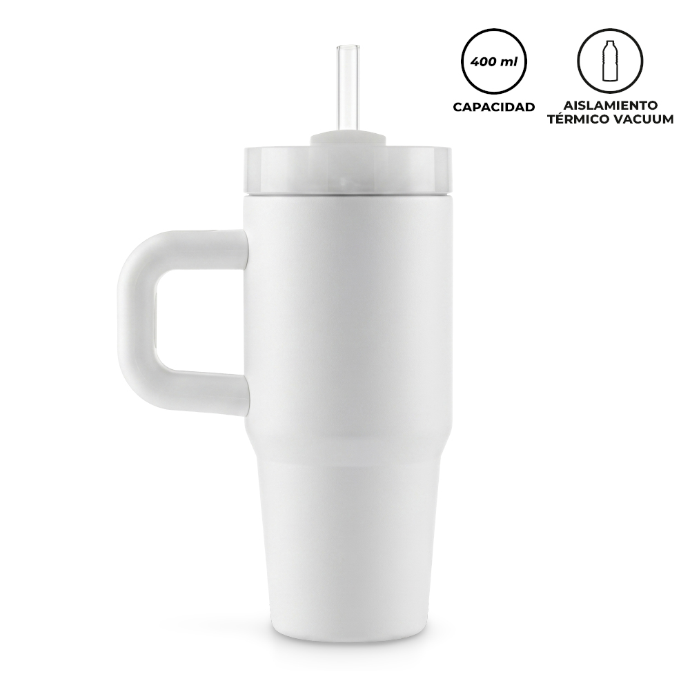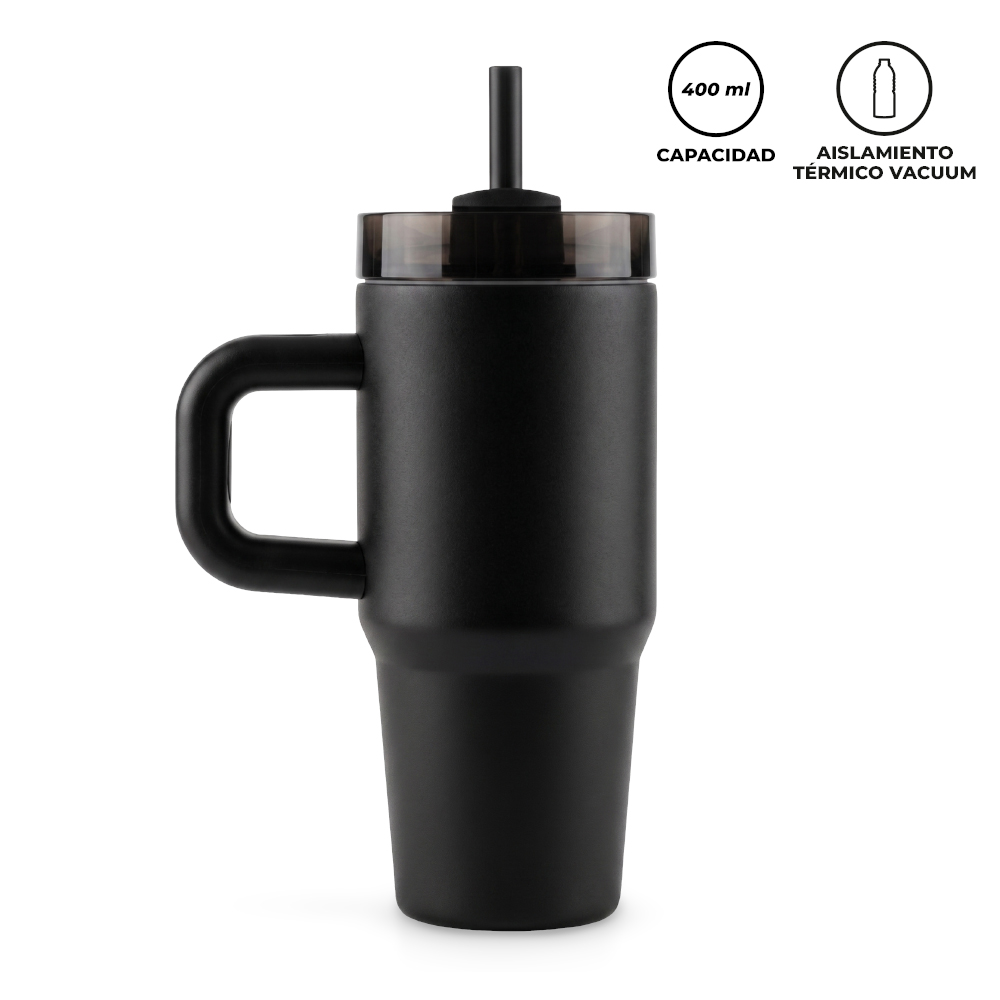 Mug metálico vacuum en acero inoxidable, con aislamiento térmico que mantiene la bebida fría o caliente hasta 6h, aprox (puede variar dependiendo condiciones climáticas).Tapa rosca. Incluye pitillo plástico. Empaque caja individual.Medidas: 18 cm x 6 cm diámetro.Marca: 5 cm / Tampografía / Láser.Medidas: 24.5 cm x 7 cm de díametro.Marca: 4 cm / Tampografía con tratamiento / Láser.