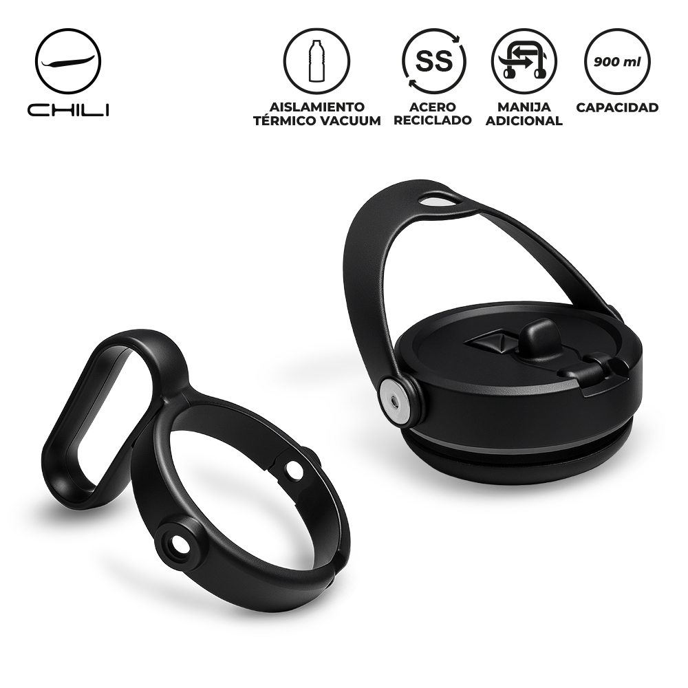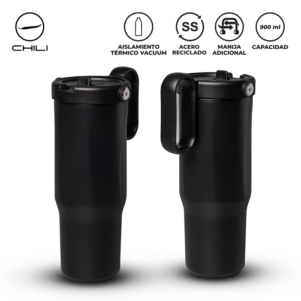 Mug doble pared vacuum en acero inoxidablereciclado, con aislamiento térmico que mantienela bebida fría entre 8-10h aprox o caliente3-4h aprox (puede variar dependiendo lascondiciones climáticas). Tapa rosca plástica conpitillo y manija plástica adicional intercambiable.Estuche caja individual.Medidas: 24.5 cm x 7 cm diámetro.Marca: 4 cm / Láser.