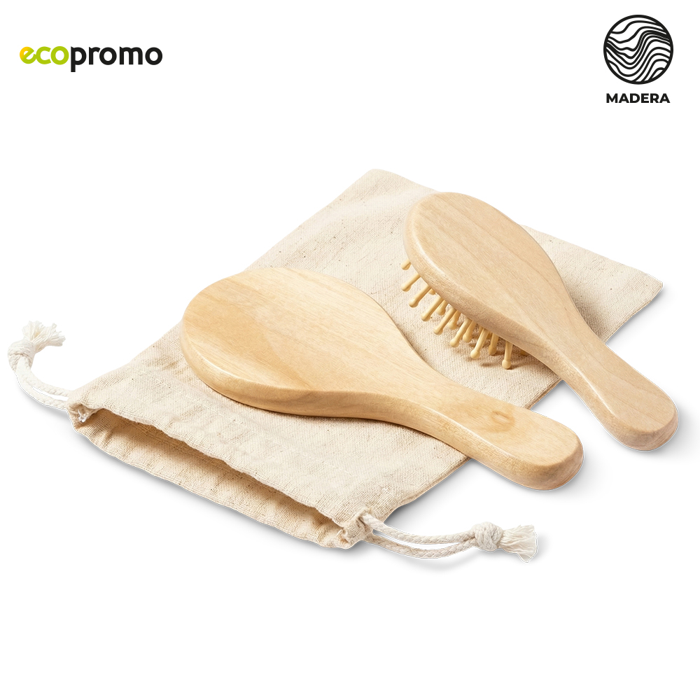 Set de espejo y cepillo en madera natural. Con bolsa en algodón. Artículo para uso personal, no se admiten Cambios/devoluciones. Empaque bolsa individualMedidas Bolsa: 18 cm x 12 cm. Marca: Bolsa: 5 cm / Screen / Cepillo - Espejo: 4 cm / Láser.