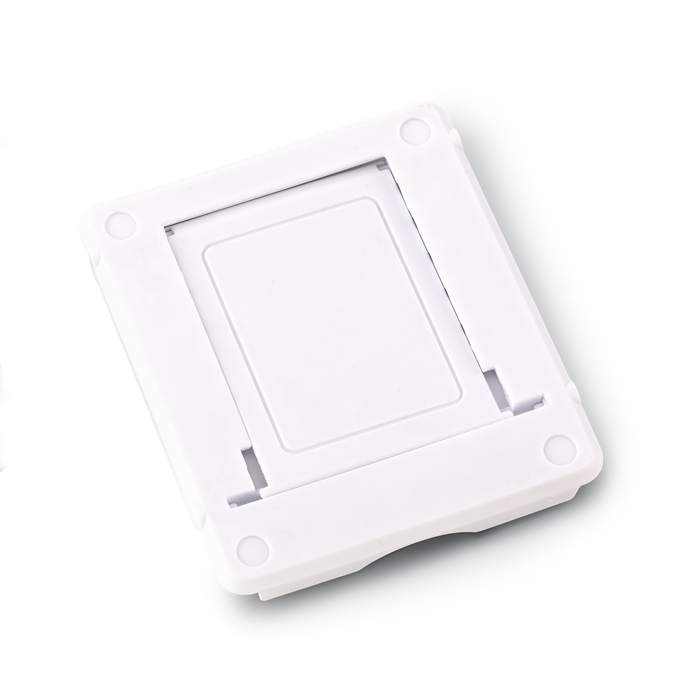 Soporte plástico para móviles y Tablets.6 posiciones, diseño compacto y plegable.Medidas Cerrado: 8 cm x 7 cm.Marca: 4 cm / Tampografía.Ficha Técnica