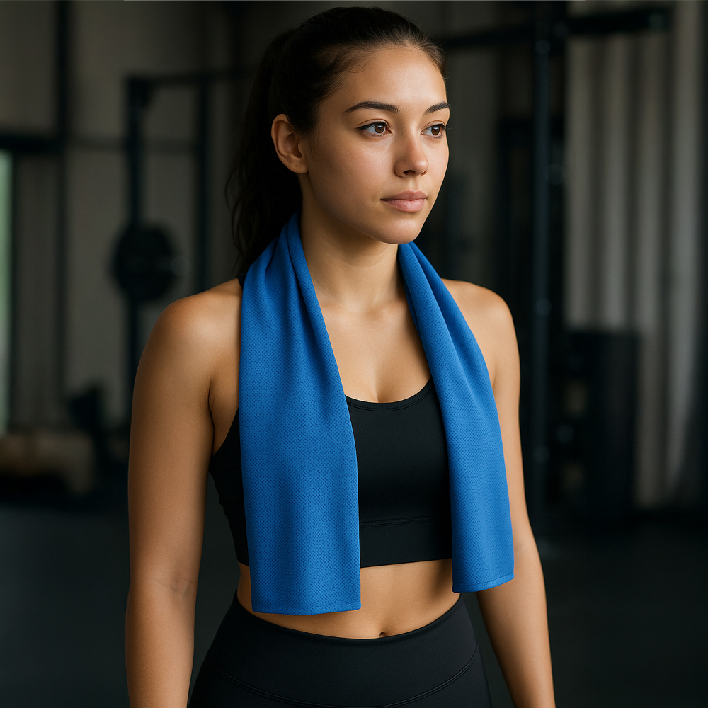 Toalla poliéster con tejido especial que al humedecerse bloquea el agua, manteniendo la temperatura de 3 a 4 horas.Su estructura permite que el agua reduzca la sensación de calor.Medidas: 81 cm x 31 cm.Marca: 10 cm / Screen - Bordado / Se define por puntadas.Producto con condiciones especiales de alistamiento,consulte con su asesora el tiempo de entrega.